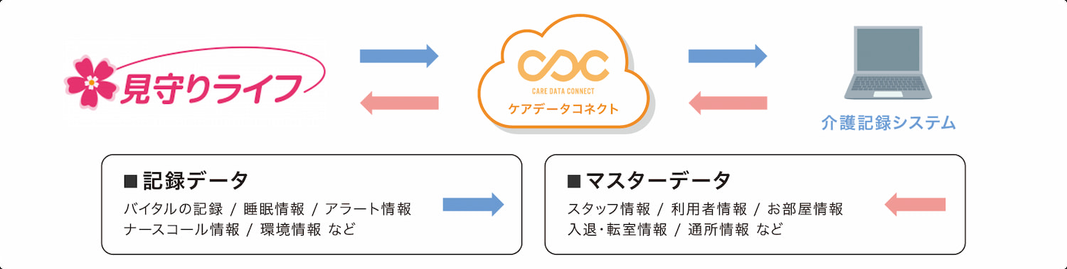 見守りライフが取得したデータを介護ソフトに自動で取り組みます。